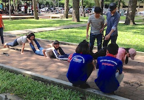 そして公園では、学生たちも楽しそうに、遊んでます。というか、何かのトレーニング?