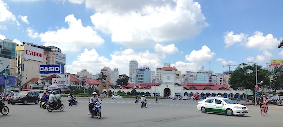 駅前のロータリー。ニャチャン市街には、信号というものがほとんどありません。車は少なく、バイクが恐ろしく多いです。